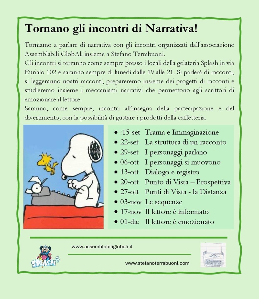 La Caffetteria Splash di Roma ha riaperto e riprendono i corsi di Narrativa e di Drammaturgia. Ci ve...
